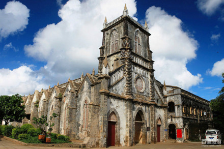 圣堂景區(qū)位于潿洲島盛塘村,是全國(guó)重點(diǎn)文物保護(hù)單位,“晚清四大天主教堂”之一。教堂由法國(guó)巴黎外方傳教士建于1853年,歷時(shí)10年建成,主體建筑保存較為完好,是中西文化融合共生的歷史見(jiàn)證。整座建筑主要取材于海底珊瑚沉積巖,運(yùn)用周密的力學(xué)設(shè)計(jì)建成,是典型的文藝復(fù)興時(shí)期法國(guó)哥特式教堂,外表高聳的羅馬式尖塔有著“向天一擊”的動(dòng)勢(shì),造成一種“天國(guó)神秘”的幻覺(jué),堪稱別具一格。