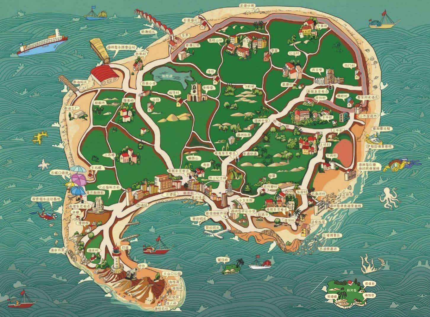 第一種:龜石海濱公園(騎上北海地區(qū)最陡的山坡)—大沙灘—漁家風(fēng)情村—海參養(yǎng)殖廠—天主教堂—石螺背—海底珊瑚區(qū)(潛水)—百獸鬧海。