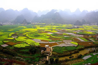 而中南部納灰村一帶,只見一座座奇峰從錦繡田園中拔地而起,瑰奇挺秀,姿態(tài)萬千,峰與峰之間若連若斷,錯落有致具有極強的透空感。萬峰林生態(tài)良好,民族風情濃郁。座座奇美的山巒,與碧綠的田野、彎曲的河流、古樸的村寨、蔥郁的樹林融為一體,構成大自然中最佳的生態(tài)環(huán)境,形成罕見的峰林田園風光。人們都說:要觀天下最美的風光,到萬峰林;要觀天下最美的田園,到萬峰林。