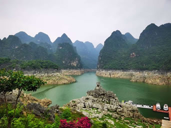 在鄭屯附近的峰林之中,還有古廟、古營盤。頂效附近又有世界罕見的"貴州龍化石"和1.2萬年前的"興義人"文化遺址。峰林之中還有國家級風景名勝區(qū)馬嶺河峽谷和省級風景區(qū)泥幽石林及萬峰湖風景區(qū)。泥曲石林像萬峰林中的一缽花籃。萬峰湖湖面開闊秀麗,港灣幽深,沿岸峰林、石林、溶洞、天坑、森林密布,構成眾多的景觀景點。尤其獨特的是一水連三省,民族風情濃厚。