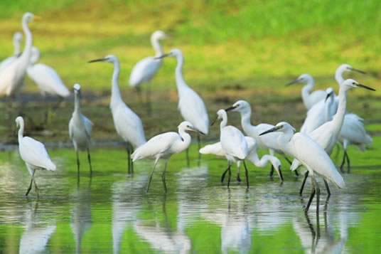 鷺鷥天堂位于海南省屋基村。村中三、四層樓高的三棵大榕樹和茂林修竹,成為萬只白鷺生活的"天堂"。白鷺又稱鷺鷥,屬鳥綱鶴形目鷺科,是世界上受保護(hù)的珍禽之一。白鷺群棲于屋基村已有多年。每年臨近清明成群結(jié)隊飛來,12月以后分批離去,在此生活八、九個月之久。為便于觀鳥,村中修建了高達(dá)6層的觀鳥樓。