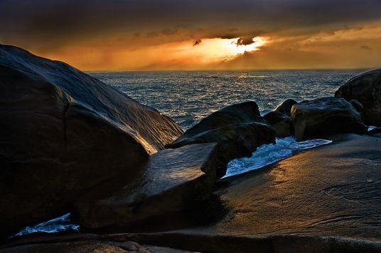 文昌石頭公園位于海南省文昌市龍樓鎮(zhèn),以銅鼓嶺為中心,是海南的最東角,公園沿海長2公里,是數(shù)萬年前造山運(yùn)動隆出地表的石頭,經(jīng)漫長歲月潮汐的拍打雕刻和風(fēng)化而成的海蝕地貌。這里屬于基巖海岸,巖石為花崗巖,花崗巖內(nèi)有變質(zhì)巖侵入體,許多巖石中有很多漂亮的條紋和圖案,地貌類型為海蝕地貌,具體表現(xiàn)為海蝕平臺、海蝕崖、海蝕柱、海蝕穴等。