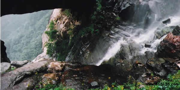 天生橋瀑布群,在阜平縣城西南30多公里處百草坨東側(cè),分布著九個(gè)大瀑布,一座天然形成的橋梁,被專家鑒定為中國(guó)北方最大的瀑布群和由變質(zhì)巖形成的中國(guó)最大的天生橋。瀑布群集中在與百草坨相連的一條溝谷中,最高的瑤臺(tái)瀑布落差112.5米。天生橋是由瀑流沿山谷裂隙沖蝕、崩塌形成的,長(zhǎng)27米,寬13米,高13米,與流量最大、落差最高的瑤臺(tái)山銀河瀑布組合,形成了一個(gè)天然地質(zhì)奇觀。盛水期飛流直下,如天馬奔騰,驚天動(dòng)地;枯水期清流潺潺,聲韻清脆,宛如輕音樂協(xié)奏曲。冬季瀑布水凝,生成千千萬萬、大大小小、姿態(tài)各異的冰柱,猶如鬼斧神工造化的玉雕。