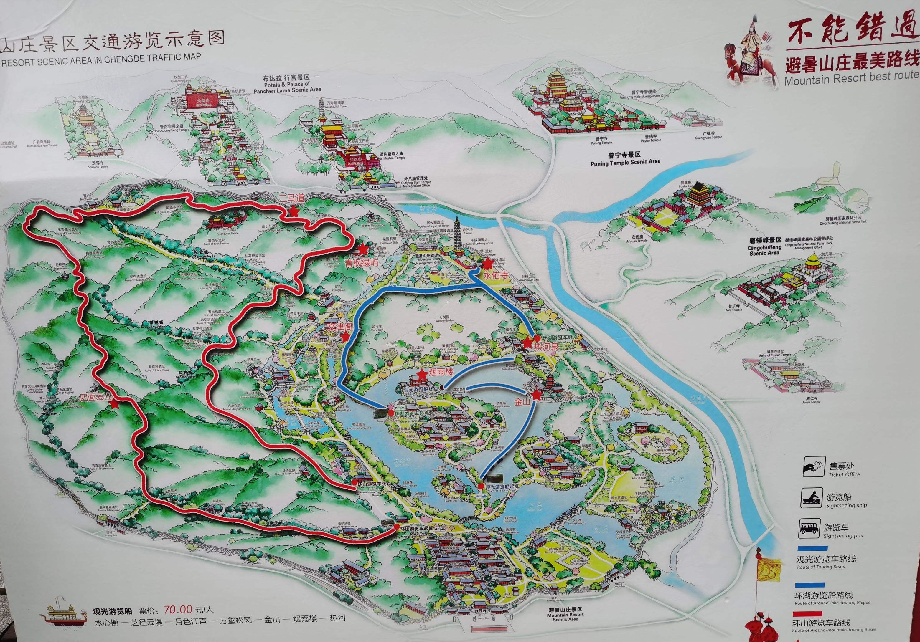 山巒區(qū):位于山莊西北部,面積443.5萬(wàn)平方米。山區(qū)占了整個(gè)園林面積的五分之四。從西北部高峰到東南部湖沼、平原地帶,相對(duì)高差180米,形成了群峰環(huán)繞、色壑縱橫的景,山谷中清泉涌流,密林幽深。高聳的山峰好似天然屏障,阻擋了西北寒風(fēng)的侵襲,是調(diào)節(jié)山莊氣候的重要因素。當(dāng)年利用山峰、山崖、山麓、山澗等地形,修建了多處園林、寺廟,共計(jì)40余處。