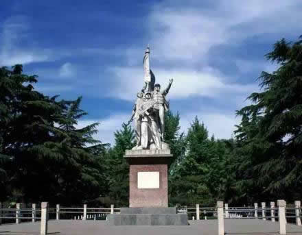 步入大門,迎面而立的是一組高約11米的工農(nóng)兵塑像。該塑像成為邯鄲市繼晉冀魯豫烈士陵園內(nèi)“八路軍”、“民兵”兩組大型人物群雕后,又一組大型雕塑。工農(nóng)兵塑像的后面是筆直的公園大道,中間為如茵的草叢和剪裁整齊的灌木,兩側(cè)為蒼勁挺拔的雪松,一直向西延伸到叢臺下的環(huán)城湖。