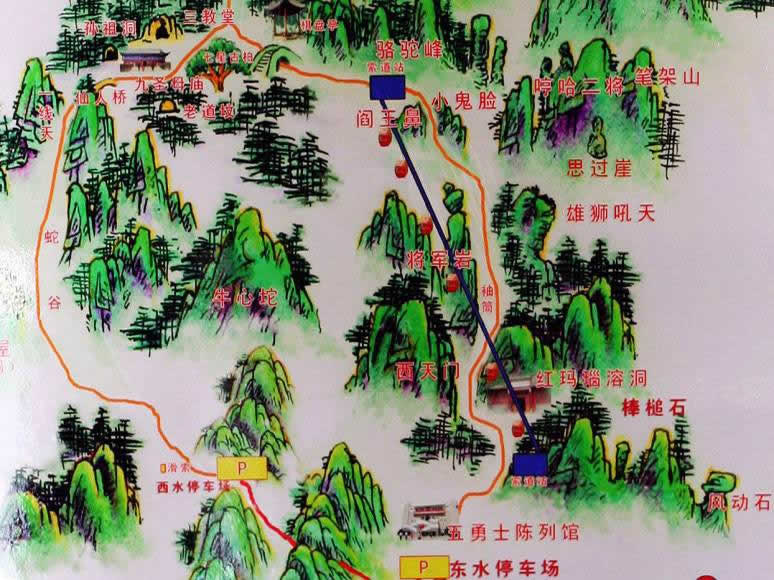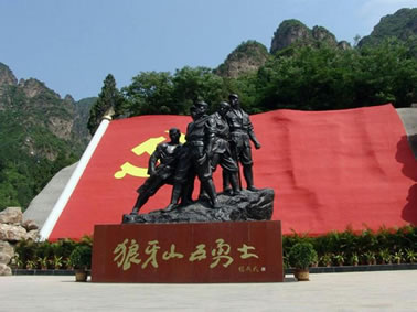 狼牙山原名郎山,因漢武帝時太子劉據(jù)之子為躲避“巫蠱之獄”避難于此而得名。西漢武帝晚年多病,疑其左右為巫蠱(埋木偶人,詛咒害人)所致,涉及皇后、太子、公主等親屬,太子劉據(jù)自殺,其子遠遁該山,故名。郎山下原有西晉太康元年(280)詔錫郎山君(漢武帝孫)及其子觸鋒將軍父子法祀碑與郎山君祠、觸鋒將軍廟。郎與狼諧音,亦名狼山。因山峰聳立,危峰參差迭起似狼牙,又稱狼牙山,為古易州十景和古城保定八景之一的“狼山競秀”。山上不但有風動石、仙人橋、南天門等自然奇觀,還有老君堂、三教堂、蠶姑廟等眾多的文物古跡。狼牙山五勇士之壯舉,名聞海內(nèi)外,為國家森林公園和愛國主義教育基地,國家紅色旅游熱線景區(qū)。緬懷先烈,銘記歷史,愛我中華,狼牙山風景區(qū)決定每年9月25日狼牙山五勇士(馬寶玉、葛振林、宋學義、胡德林,胡福才)跳崖紀念日當天免費對游客開放。“巍巍燕山高,瀟瀟易水寒。英雄五壯士,威震狼牙山!1941年9月25日五勇士為了掩護部隊撤離他們面對步步逼近的日偽軍,寧死不屈,毀掉槍支,義無反顧,縱身跳下數(shù)十丈深的懸崖。