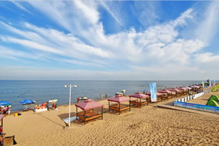 廣場(chǎng)緊靠沙灘浴場(chǎng),浴場(chǎng)具有沙細(xì)、灘緩、水清、潮平四大特點(diǎn),自然環(huán)境優(yōu)美,游客在這里可以體驗(yàn)海水浴、熱沙浴、也可以去進(jìn)行沙灘排球、沙灘足球、沙灘拔河、拓展訓(xùn)練等游樂(lè)活動(dòng)。到了晚上,在海螺廣場(chǎng)擇一位置,看海上的夕陽(yáng)如何消失,看海上明月共潮生。支幾頂帳篷,和三五好友談天說(shuō)地、參加篝火晚會(huì),品嘗烤全羊等美味佳肴,最后和大海一起等待日出,感受太陽(yáng)的心跳。