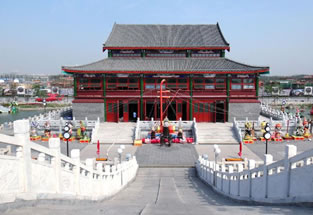 盛樂坊:“盛樂”取自《禮記.月令》,命有司,為民祈祀山川百源,大雩(yu)帝,用盛樂。“雩”,是古代的一種祭禮,說的是古代每到夏季的第二個(gè)月,用盛大的舞樂隊(duì)伍祭祀天地及山林川澤之神,祈求風(fēng)調(diào)雨順,五谷豐登,具有節(jié)日的氣氛。這個(gè)牌坊與對(duì)岸的大戲樓遙相輝映。