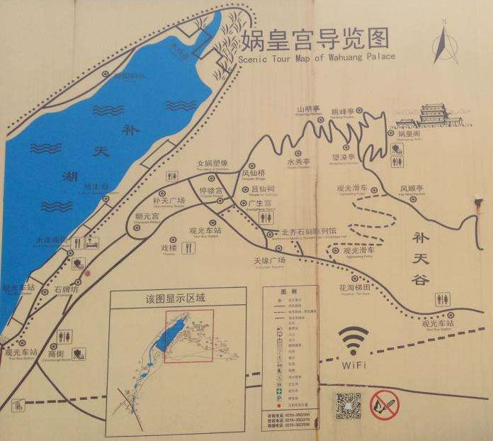 這里有女?huà)z文化廣場(chǎng),山頂建筑兩部分組成,主體建筑媧皇宮依山就勢(shì),結(jié)構(gòu)奇特,獨(dú)具匠心,有吊廟、活樓之稱,媧皇閣、梳妝樓、迎爽樓、鐘樓等最具風(fēng)采,媧皇閣緊傍懸崖,通高23米,以9根鐵索系于崖壁,游客多時(shí),樓體晃動(dòng),鐵索朗朗作響。