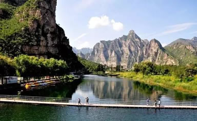 拒馬河是河北省內(nèi)惟一一條長年不斷的河流。拒馬河景區(qū)不僅風(fēng)光秀麗,氣候宜人,而且有眾多的文物古跡與自然風(fēng)光。區(qū)內(nèi)有沙蟒攔路、石猴戲水、石門頓開、天橋拱立、懸崖棧道、孩童鬧學(xué)等“下莊八景”。由于得天獨厚的優(yōu)勢條件,該景區(qū)建起了眾多的賓館、飯店,有一首打油詩這樣寫道“徜徉翡翠中,夜伴歌舞聲,星際蕩葉舟,脫塵生戀情”勾勒出一幅美好畫卷,如詩如畫的拒馬河景區(qū)便成了人們觀光娛樂勝地和食宿基地。