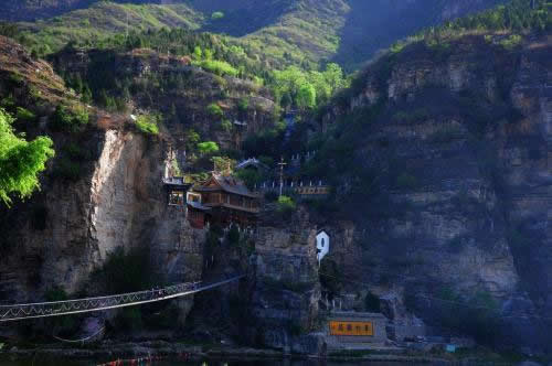 龍門天關(guān)山勢險峻,易守難攻,主峰天柱峰海拔1099米,氣勢磅礴,草木茂盛,百花齊放,百鳥爭鳴,有奇山,奇樹,奇花,奇水;有四季恒溫的天然冷風(fēng)口,山泉涌出,飛瀉群峰,玉龍飛舞,銀花飛濺,有九瀑十八潭之自然壯景。龍門天關(guān)地質(zhì)遺跡獨特,有距今1.18億年至0.918億年形成的花崗巖組成的巨大斷層峽谷,斷崖絕壁,氣勢磅礴,雄偉壯觀。上面有摩崖石刻,是華北地區(qū)最大的石刻群。上天溝主山峰海拔1099米,有九道瀑布和十八灣清潭,美麗風(fēng)光似“天庭勝景”。峽谷中奇峰林立,雄偉壯觀,花崗巖地貌景觀壯美,奇特,有龜身蛇頭的“玄武”,有“魚鱗石”“千層巖”等等,瀑布如玉龍飛舞,銀花飛濺,形成多臺階跌水景觀。