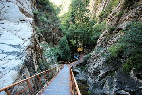 被譽(yù)為“天下第一峽”的百里峽是野三坡獨具特色的景區(qū)之一。在“雙崖依天立,萬仞從地劈”的百里“構(gòu)造嶂谷”中,不僅有“老虎嘴”“一線天”“回首觀音”“天生橋”,還有涌泉飛瀑,跌宕聲聲的峽谷溪流和生性好動的小松鼠及山巔枝頭的鳥鳴。生態(tài)環(huán)境原始自然。峽谷內(nèi)旅游設(shè)施與自然相協(xié)調(diào),安全環(huán)保。置身其谷,步游路隨山峰而轉(zhuǎn),溪水繞游路而行,山水相依,植被茂密,空氣清新,世間無比。游在其中,頭頂絕壁萬仞、藍(lán)天一線;腳踏鵝卵石甬路,還可足療保。宦愤吶_、碧水清潭;身旁高山飛瀑、澗流潺潺;崖壁上灌木成林、青檀倒掛懸,獨根草、野海棠和羊齒蘭猶如墨彩涂于壁間,密如綠毯。