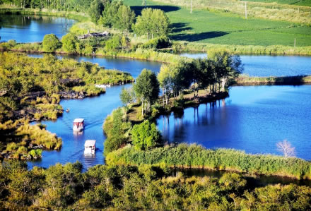 鶴鳴湖坐落在葦塘中間,背靠世界奇觀噴氣錐碟,面對(duì)古老石塘的湖泊,水深3-5米。它的水面以葦塘觀鶴和環(huán)境幽靜聞名,有二條寬50米的水生植物帶,香蒲、蘆葦、菱角等挺水植物十分茂密。水底是火山砂,池中魚(yú)類(lèi)豐富,盛產(chǎn)鯽魚(yú),有興趣的游客可以在船上垂釣。四池湖岸水草叢生,野生水鳥(niǎo)白鶴、丹頂鶴常常雙棲雙飛筑巢產(chǎn)卵,是不可多得的夏季野營(yíng)區(qū)。當(dāng)游人靜靜的坐在對(duì)面湖畔古石塘之上,聞著濃濃的草香,聽(tīng)著遠(yuǎn)近仙鶴的鳴叫,一定會(huì)深深?lèi)?ài)上這個(gè)火山世外桃源、美麗的鶴家鄉(xiāng)。