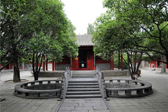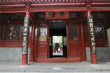 古代儒家倡導(dǎo)有道統(tǒng)就有治統(tǒng),因?yàn)椤爸谓y(tǒng)得道統(tǒng)而盛,道統(tǒng)賴治統(tǒng)而光!奔漓氲澜y(tǒng)三圣人,是嵩陽(yáng)書(shū)院的傳統(tǒng),在中國(guó)古代書(shū)院中,唯有嵩陽(yáng)書(shū)院保存此種祭祀形式。柱聯(lián)為清末政治家林則徐所作: “海納百川,有容乃大;壁立千仞,無(wú)欲則剛”。
