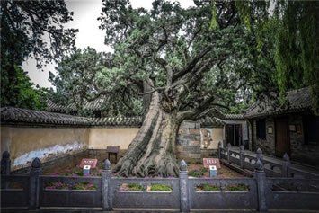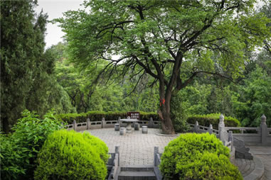 二程手植槐,樹(shù)高19.5米,圍粗4米。雖然樹(shù)干嶙峋,中空外實(shí),槐冠卻叢撥陰濃,新枝簇簇,樹(shù)姿優(yōu)美,老而不衰。相傳為北宋理學(xué)名家程顥到嵩陽(yáng)書(shū)院講學(xué)時(shí)親手所栽。