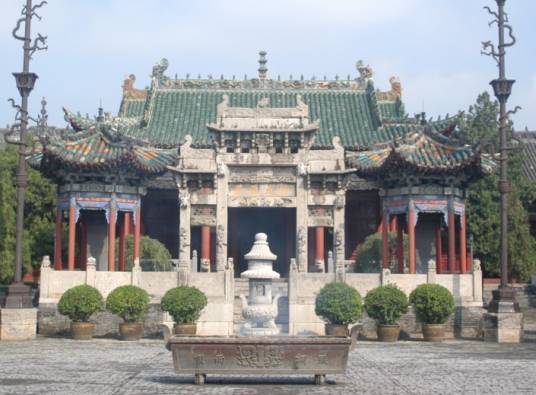 周口關(guān)帝廟,整座建筑群占地20余畝,沿南北中軸線,分三進院落縱深布局,結(jié)構(gòu)嚴謹。其木雕、石雕、磚雕數(shù)量多,內(nèi)容豐富,工藝精湛,突出反映了清代中晚期那種追求精雕細琢、裝飾華麗的社會風(fēng)尚。建筑裝飾的題材中大量采用了“二龍戲珠”、“鳳凰牡丹”、“五福捧壽”、“加官進爵”、“金玉滿堂”等各種吉祥如意圖案紋飾,是封建社會中傳統(tǒng)倫理道德的形象反映。