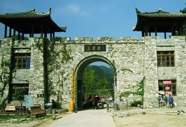 捷慶門:這是為紀(jì)念花木蘭登清涼寨修建的一個牌坊。唐太宗年間,木蘭女扮男妝,替父從軍,十年征戰(zhàn),得勝回朝,謝絕天子官封尚書郎的賞賜,馳千里足回歸故里。途經(jīng)清涼寨時,適逢雨過天晴,天空彩虹高掛,雄鷹翱翔,山間云霧繚繞,鳥語花香。情不自禁地躍馬揚(yáng)鞭,直奔清涼寨頂峰。站在海撥800余米的古寨之顛。極目遠(yuǎn)眺,湖光山色,盡收眼底,田園村舍,宛若身旁。山由衷發(fā)出荊楚名岳清涼寨的感嘆。