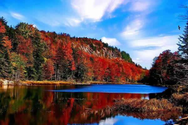 楓林灣:這是一片參天蔽日的楓樹林,春綠秋紅,給人寧靜溫馨而又博大壯觀的感受。