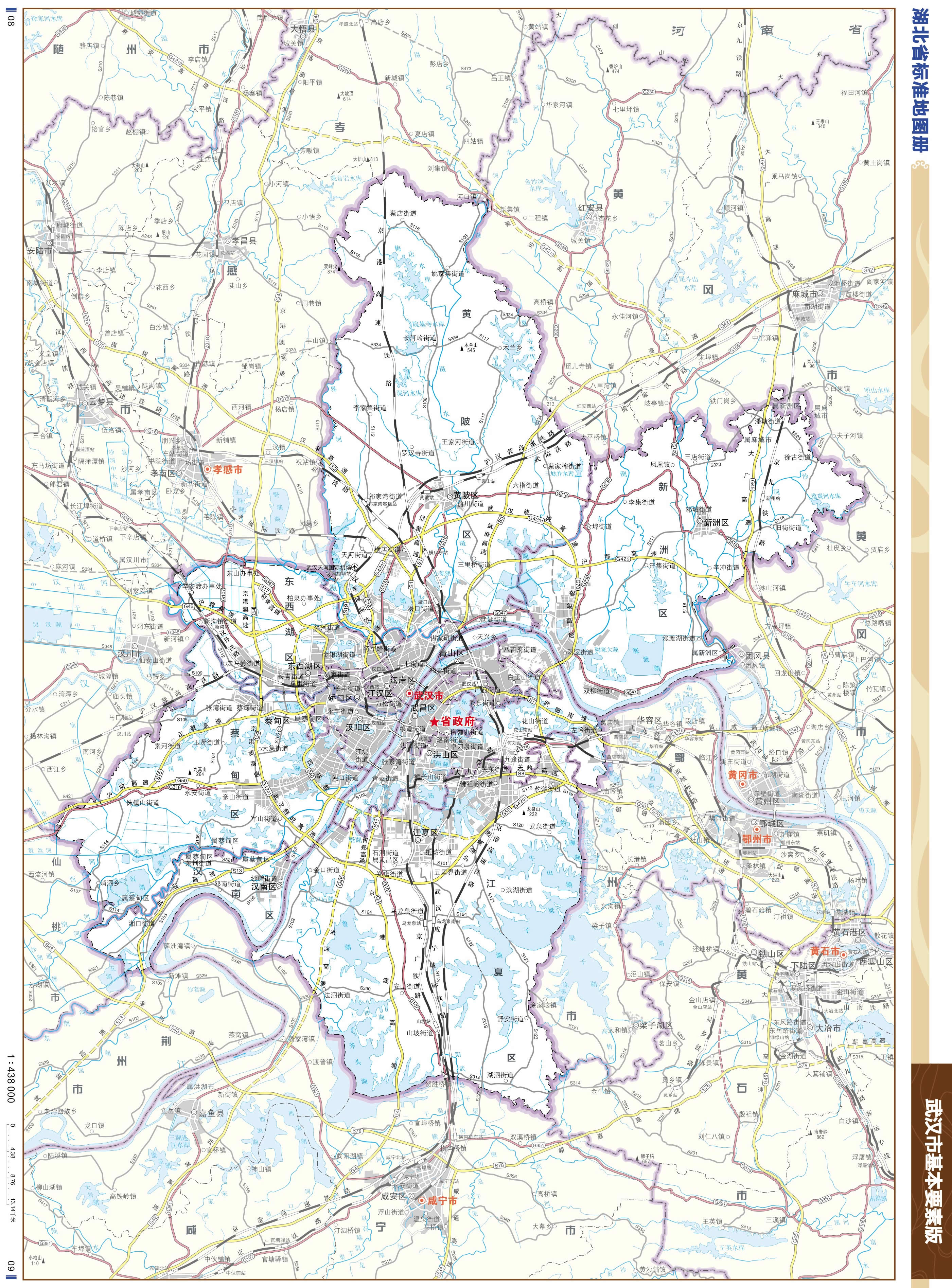 省高速:S1岱黃高速公路、S2漢孝高速公路、S3武麻高速公路、S5武英高速公路、S7漢鄂高速公路、S8武黃高速公路、S11青鄭高速公路、S12武嘉高速公路、S13武監(jiān)高速公路、S15漢蔡高速公、S18武漢機(jī)場(chǎng)高速、武漢天河機(jī)場(chǎng)第二高速公路、武陽(yáng)高速