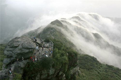 衡陽市南岳衡山旅游區(qū)南距衡陽市中心35千米,屬南岳區(qū)管轄,總面積184平方千米,為國務(wù)院1982年第一批公布的國家重點風(fēng)景名勝區(qū)。有9溪、10橋、24泉、15洞、9池、9潭、38巖等!白H诜逯,藏經(jīng)殿之秀,方廣寺之深,水簾洞之奇”,古稱南岳“四絕”,“麻姑仙境之幽,穿巖詩林之趣,龍鳳飛瀑之雄,禹王古城之古”,是南岳“新四景”。南岳旅游風(fēng)景名勝區(qū)居湘中偏東地區(qū),以主峰祝融為中心,總面積184平方千米。大致分南岳古鎮(zhèn)、水簾洞、忠烈祠、磨鏡臺、祝融峰、藏經(jīng)殿、方廣寺、龍鳳潭8個游覽區(qū)和西嶺1處避暑區(qū)。