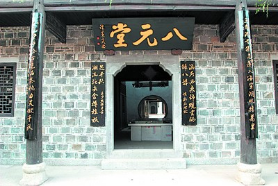 八元堂,又名寧鄉(xiāng)會館,座落在古鎮(zhèn)保健街上,建成于清咸豐十一年(1861年)。在晚清時期,靖港是溈水河入湘江的天然良港和商埠,昔日寧鄉(xiāng)的谷米、煤炭、油鹽等都是在此集散,來靖港從業(yè)的寧鄉(xiāng)人接近四千人,“西接湖垸,金稻銀棉憑集散;東依湘溈,風帆云影任驅(qū)馳!北闶窃娙藢Φ锰飒毢竦木父酃沛(zhèn)的頌贊,它在當時是一個管理寧鄉(xiāng)船舶和谷米銷售的據(jù)點,也是為來靖港的寧鄉(xiāng)老鄉(xiāng)下榻休息和聯(lián)絡鄉(xiāng)情等的服務機構(gòu)。