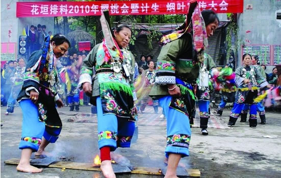 燕子山位于花垣縣排料鄉(xiāng)鏡內(nèi)。山上樹木參天,山北有500多米高的峭壁,七眼泉水從半壁吐出,瀉向深谷,每當(dāng)霧氣從谷底升起,人們就根據(jù)它的色彩判斷這一帶的天氣,白霧騰升——晴天,青霧飛出——陰天,黑霧翻滾——大雨即來(lái)。 |