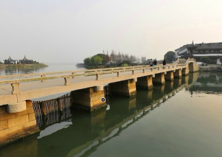 該橋又稱南塘橋、南觀音橋。建于南宋,坐落在古蓮池西側(cè)的三圖河上,為明代“錦溪八景”之一,“古井風(fēng)亭”所在地,