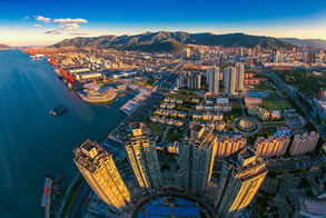 連云港港位于黃海之濱,中國沿海中部的海州灣西南岸,江蘇省的東北端,是中國沿海十大海港、全球百強集裝箱運輸港口之一,開通了50條遠近洋航線,可到達世界主要港口。港口北倚長6㎞的云臺山,為橫貫中國東西的鐵路大動脈——隴海、蘭新鐵路的東部終點港。與韓國、日本等國家主要港口相距在500海里的近洋扇面內,是江蘇最大海港、蘇北和中西部最經(jīng)濟便捷的出?凇⑿聛啔W大陸橋東橋頭堡,以腹地內集裝箱運輸為主并承擔亞歐大陸間國際集裝箱水陸聯(lián)運的重要中轉港口,集商貿(mào)、倉儲、保稅、信息等服務于一體的綜合性大型沿海商港。