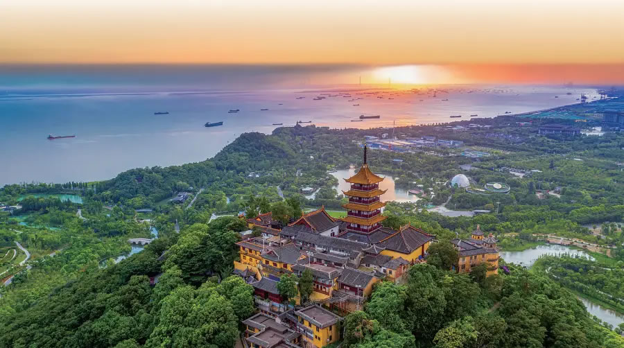南通狼山則是由海溯江的第一座名山,被稱為江海第一山。山高106.94米。狼山是佛教西方三圣之一的大勢(shì)至菩薩的道場,山上還供奉著惟一身披龍袍的大圣菩薩,狼山位列佛教八小名山之首。