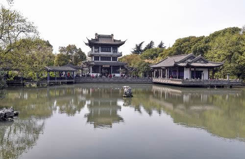 蠡湖,原名漆湖、五里湖,相傳春秋時(shí)越國大夫范蠡偕美人西施泛舟于此,湖因人而得名,園因湖而得名。民國初年,青祁村人虞循真在湖畔建青祁八景,號(hào)稱“山明水秀之區(qū)”。1927年至1936年,同村人王禹卿父子在虞的幫助下,利用原有基礎(chǔ),建蠡園;1930年王的親戚陳梅芳在其西側(cè)再建“漁莊”,又名“賽蠡園”。建國后,于1952年擴(kuò)建蠡園長(zhǎng)廊,與漁莊相連;1980年前后又拓建“層波疊影”新區(qū)。是國家AAAA級(jí)旅游景區(qū)、江蘇省重點(diǎn)文物保護(hù)單位。