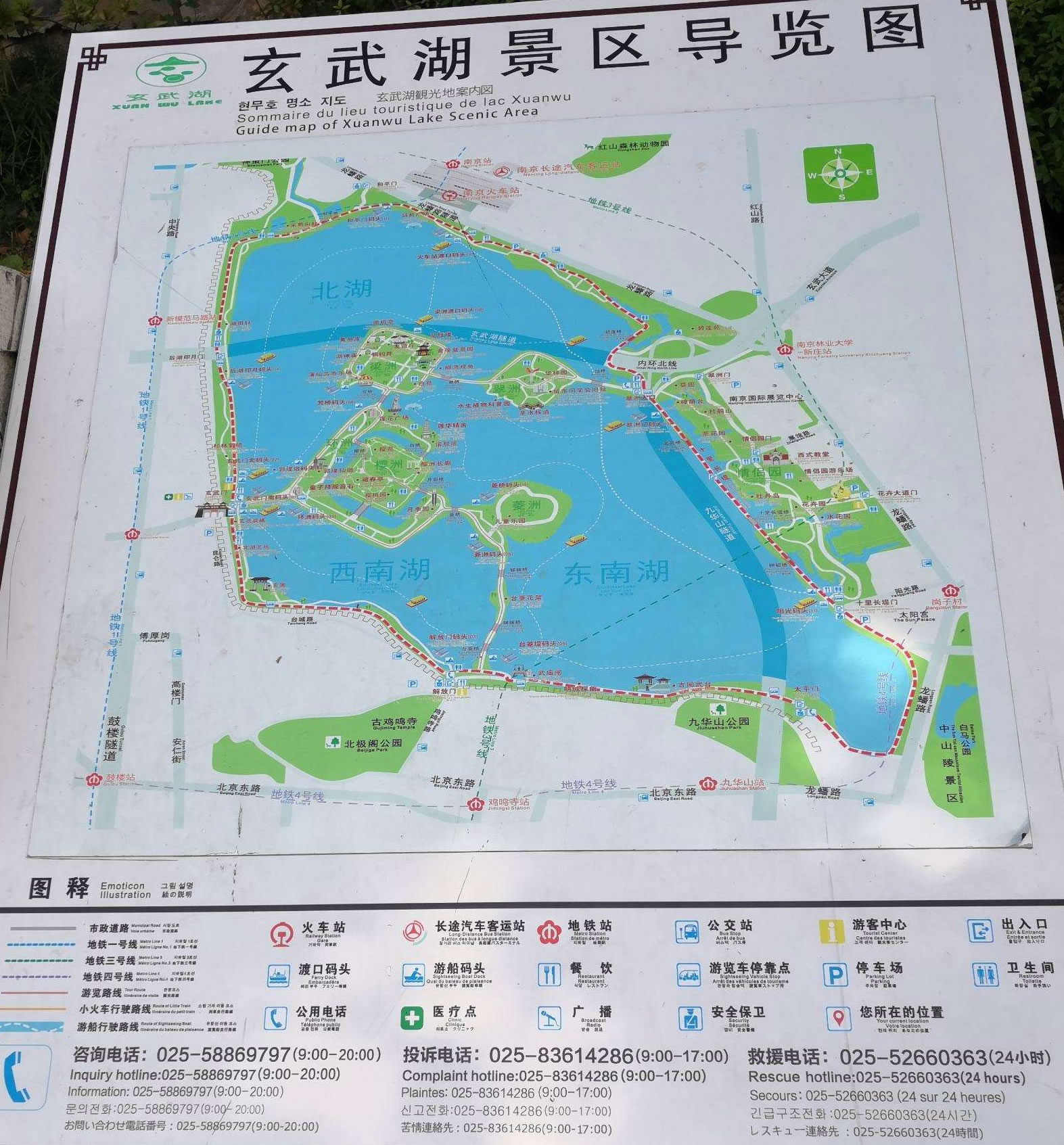 玄武湖環(huán)湖路全長(zhǎng)9.8公里,總面積56萬(wàn)平方米,周圍分部著眾多的南京著名景點(diǎn),環(huán)湖路西南半邊為南京明城墻圍繞,城墻外便是繁華的都市,靜與鬧僅一墻之隔。北岸自西向東依次為神策門公園、南京火車站,東岸自北向南依次為南京國(guó)際展覽中心、情侶園、白馬公園,南岸自東向西依次為太平門、九華山公園、古閱武臺(tái)、南京武廟、雞鳴寺、解放門、臺(tái)城,西岸自南向北依次為玄圃、玄武門、杉林氧吧、萬(wàn)三花園,其中西岸和南岸均有南京明城墻為依。