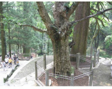 由黃龍?zhí)堆亓珠g石階上行約300米即到三寶樹。三寶樹海拔1027米,三棵參天古樹凌空聳立,二棵是柳杉,樹齡600余年,一棵為銀杏,樹齡1600年,主干數(shù)人合抱不攏,形同寶塔。三寶樹相傳為千年古可柯,樹下石碑上鐫有“晉僧曇詵手記”6字,寶樹已被重點保護。