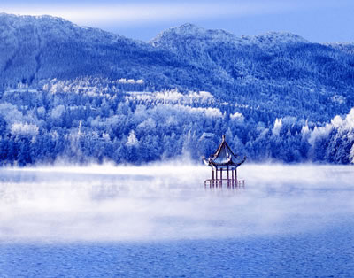 蘆林湖海拔48米,蘆林大橋高30米,橋壩一體,攔水成湖。從黃龍寺沿石階曲徑上行約20分鐘,便到蘆林大橋。二、三百萬年前,廬山處于第四紀冰期,這里是一個典型的冰窖,是當年廬山最大的屯積冰雪的谷地。