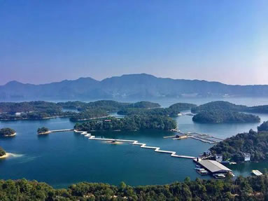 湖區(qū)擁有形態(tài)各異、大小不一的島嶼8000多座,其中包括愛(ài)心島、云居島、女神島、滄海島、箬溪島、明珠島、桑田島等。島相依,橋相連,舟相伴,幕阜、九嶺山脈,層巒疊嶂,碧波萬(wàn)頃,綠島擁翠,猶如顆顆翡翠落玉盤(pán)。