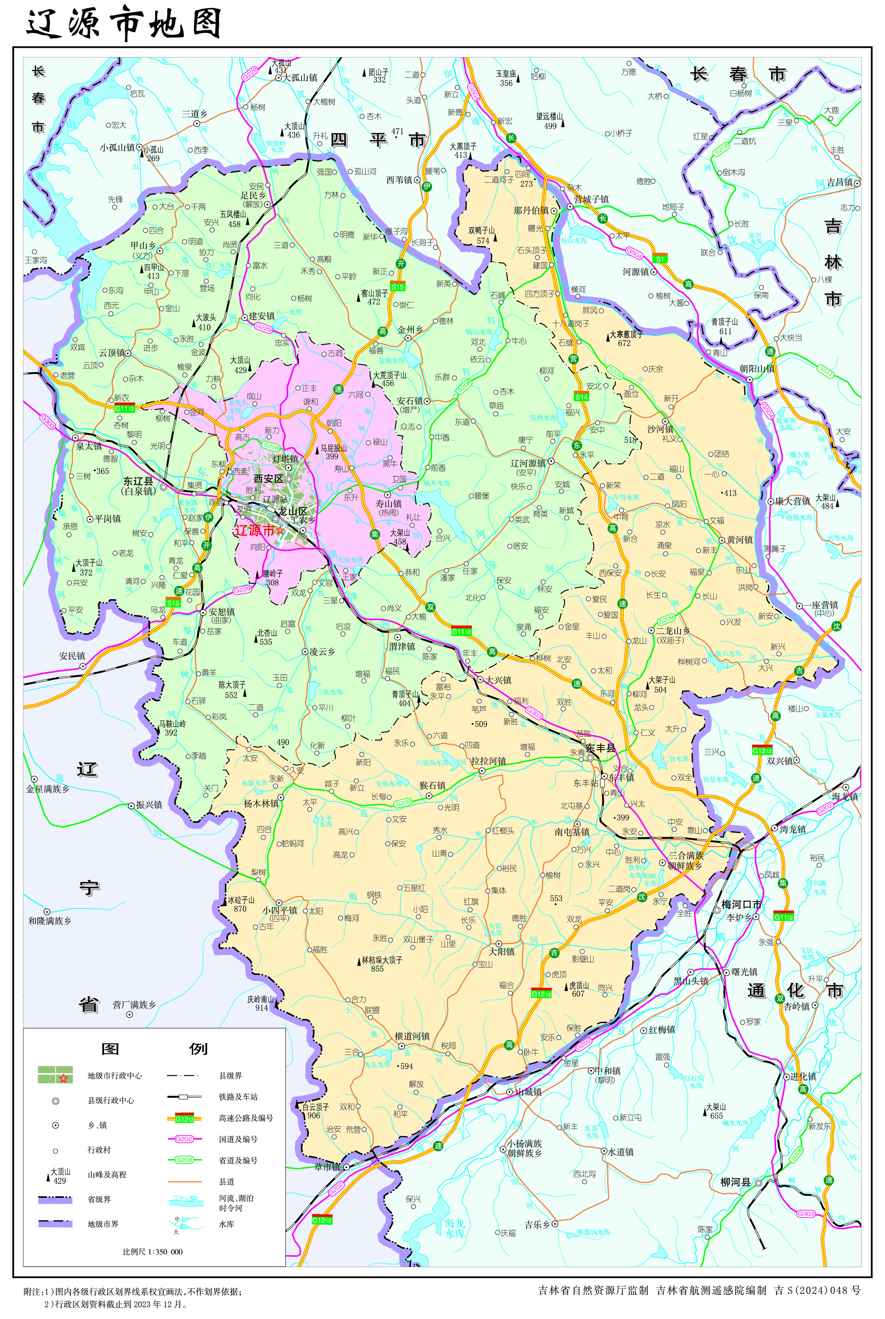 遼源市轄2個(gè)市轄區(qū)、2個(gè)縣: