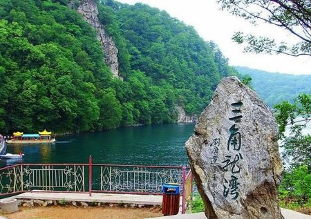 三角龍灣又名黑龍?zhí),傳說有一條三只角的黑龍距此修煉,經(jīng)常行云布雨,除惡降魔,普濟四方百姓,后來黑龍飛往長白山天池,龍去留淵,留有一灣圣水。位于輝南城朝陽鎮(zhèn)東南45公里處的高山密林之中。系古代火山噴發(fā)口積水而成,因水面呈三角形,加之湖南側(cè)矗立著30米高的三角石,故名“三角龍灣”。是進入長白山的門戶之一。這里自古以來風(fēng)光秀美,景色迷人。我國著名第二大火山群—龍崗火山群就分布在這里。