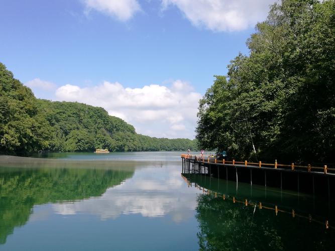 輝南縣境內(nèi)共有7個火山湖。據(jù)科學(xué)考察,是20萬年前火山噴發(fā)后地下水上升聚集而成的。