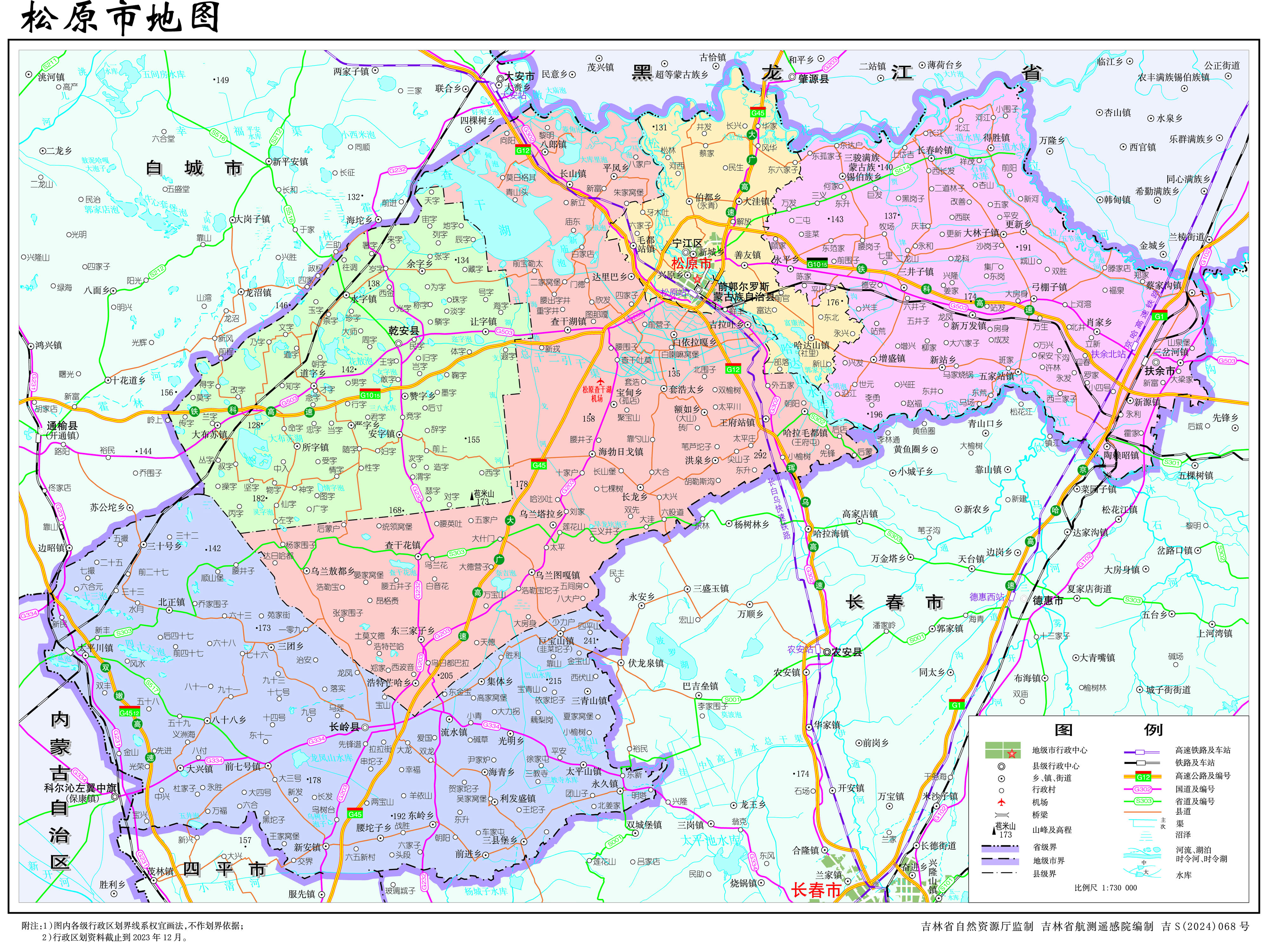 松原市轄1個市轄區(qū)、2個縣、1個自治縣,代管1個縣級市:
