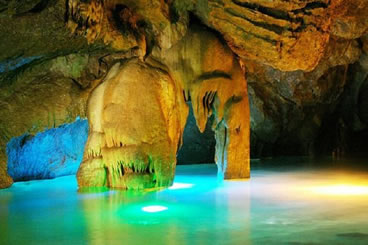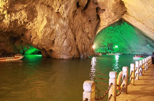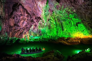 它們維妙維肖,形象逼真。特別是玉米塔、玉象和雪山三景,更是名實(shí)相符,幾可亂真。銀河兩岸鐘乳林立,石筍如畫(huà),千姿百態(tài),光怪陸離,洞頂空窿鐘乳高懸,晶瑩斑斕,神趣盎然,沿河景點(diǎn)達(dá)100余處,千姿百態(tài),各具特色,泛舟其中,如臨仙境,這是水與石渾然天成的神秘洞穴,是迄今世界上已發(fā)現(xiàn)的最長(zhǎng)可乘船游覽的地下暗河。