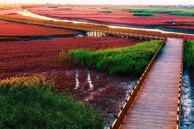 紅海灘國家風景廊道它位于遼寧省盤錦紅海灘濕地旅游度假區(qū),南起二界溝混江溝大橋,北至紅海灘濕地旅游度假區(qū)接官廳大橋與旅游路接口,全長18.115公里。是獨一無二的“世界紅色海岸線”,也被稱為“中國最精彩的休閑廊道”和“中國最浪漫的游憩海岸線”。中國婚協(xié)授予了紅海灘國家風景廊道“中國婚禮文化產(chǎn)業(yè)基地”榮譽。