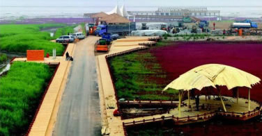 紅海灘四月初為嫩紅,漸次轉深,十月由紅變紫,最佳觀賞時間為五月至十月。這里魚肥蟹美,稻米飄香,海鷗與抽油機為伴,紅海灘與丹頂鶴相映,現(xiàn)代文明與原生文明共生。它以舉世罕見的紅海灘為特色,以全球保存最完好、規(guī)模最大的濕地資源為依托,以世界最大的蘆葦蕩為背景,與數(shù)以萬計的珍稀水禽和一望無際的淺海灘涂構成了一條生態(tài)風景廊道。它左側是旖旎延綿的紅海灘,右側是一望無際的蘆葦蕩。在春夏時節(jié),它們紅綠相濟;在秋冬時節(jié),它們金紅相映,一路貫通。