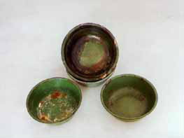 炭化月餅、手鐲、煙嘴、子彈頭等:這幾塊殘留下的月餅(已經(jīng)炭化了)其花紋還清晰可見。這些實(shí)物是一場慘無人道的大屠殺遺留下來的。1932年農(nóng)歷八月十六,即中秋節(jié)的第二天,撫順市平頂山附近的人們過完中秋節(jié)后,還有幾塊月餅沒舍得吃完。然而,就在這一天,日本侵略者制造了駭人聽聞的“平頂山慘案”,3000多人被血腥屠殺,然后放火燒毀罪證。月餅、手鐲、手表、煙嘴、銀元等等都是被害群眾遺留下的,而子彈頭、子彈夾等就夾雜在死難群眾的尸骨中。