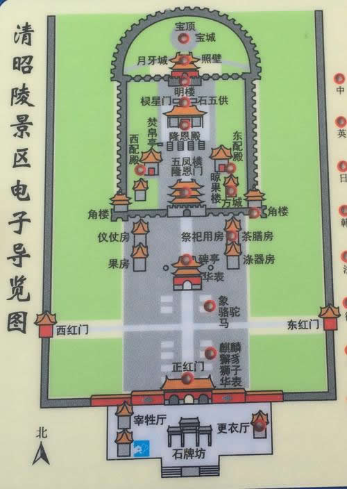 清昭陵,是在平地上建立的,主要建筑位于中軸線上,其它建筑對稱分布于中軸線兩側(cè)。昭陵由三部分組成。