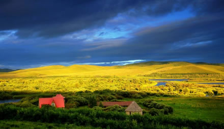 春季,五月的興安嶺上杜鵑花爭奇斗艷,尚未消融的皚皚白雪映著火紅的杜鵑花,是難得一見的人間圣景;夏季的呼倫貝爾氣候宜人,平均氣溫在16℃——21℃之間,是避暑的最佳去處,那醉人的綠色招引著你,站在草原上,看藍(lán)天上云卷云舒,心胸就會像草原一樣廣闊。鄂倫春族篝火節(jié)、草原那達(dá)慕、鄂溫克族瑟賓節(jié)、祭敖包等民族節(jié)日異彩紛呈。秋季奪人耳目的是那林海的秋色,聽林中松濤陣陣,賞亭亭玉立的白樺,到四方山、達(dá)爾濱羅看日出日落,大自然的美景令人留連忘返;走近冬天的呼倫貝爾,一個冰雕玉砌的世界,冰雪節(jié)的圣會,讓您充分領(lǐng)略青松傲雪、暢游林海雪原的豪氣和由冰峰、雪嶺、冰雕構(gòu)成的一派雪韻風(fēng)情。