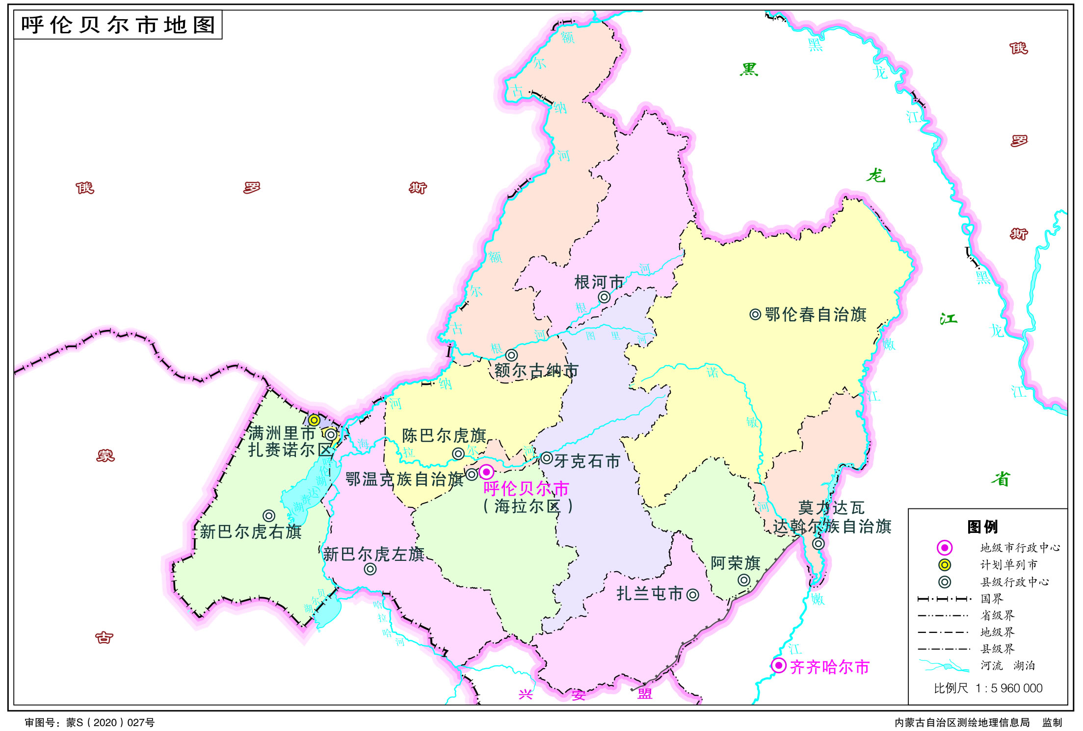 呼倫貝爾市轄2個市轄區(qū)、4個旗、3個自治旗,代管5個縣級市: