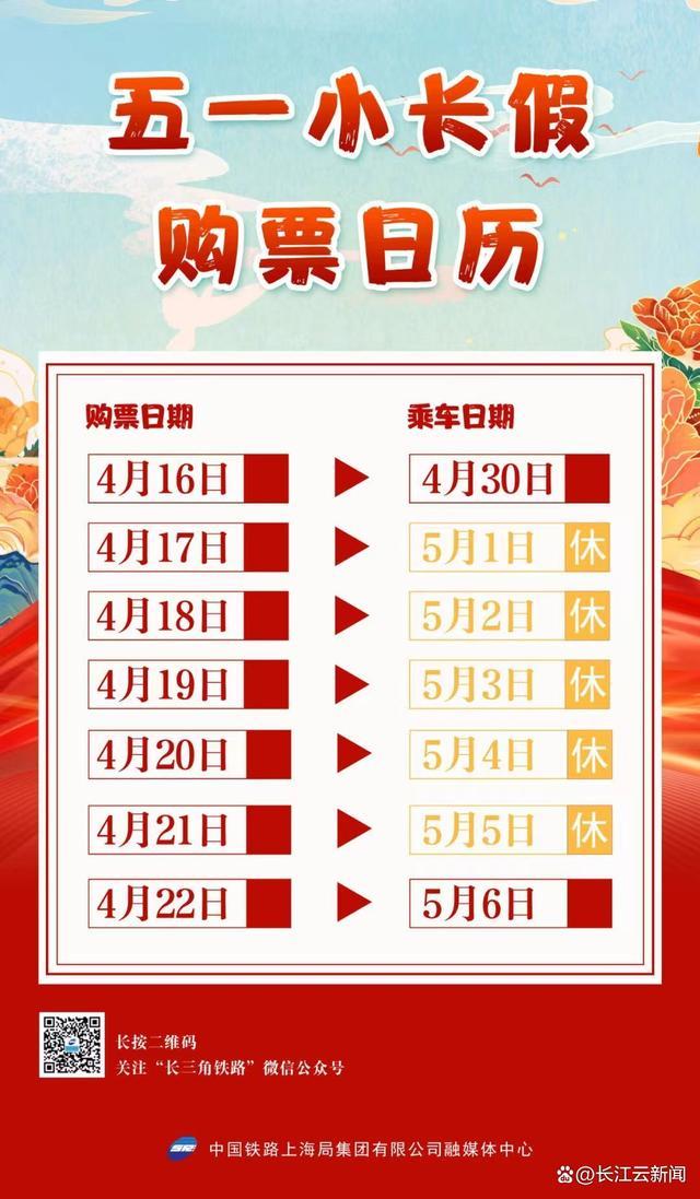 4月16日,五一小長假前一日(4月30日)火車票正式發(fā)售。2024年五一小長假自5月1日至5月5日止,共5天。根據(jù)目前鐵路客票提前15天預(yù)售的規(guī)則類推,4月16日開售4月30日火車票;4月17日開售5月1日假期首日火車票;4月21日開售5月5日假期最后一天火車票。