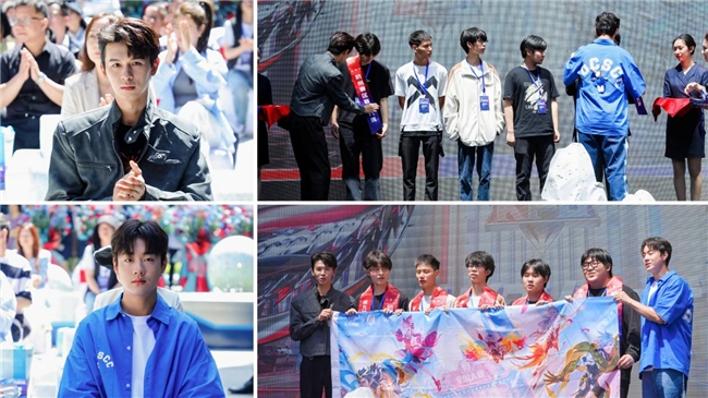 第九屆王者榮耀全國(guó)大賽——杭州賽區(qū)出征儀式(由2位種地吧少年為出征選手披上肩帶,并授予旗幟,出征儀式結(jié)束后,2位少年為選手加油打氣)