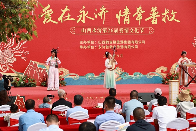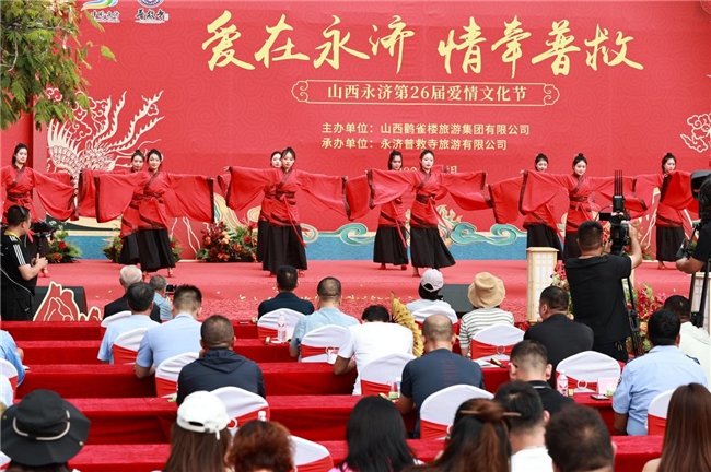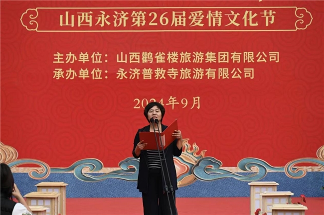 9月 21 日,普救寺迎來了第 26 屆愛情文化節(jié)的盛大開幕式。開場節(jié)目《蒲州花傘》瞬間將人們帶入了濃郁的地域風情之中。隨后,主持人隆重介紹到場領導嘉賓。永濟市政府黨組成員崔子龍發(fā)表了誠摯而熱情的致辭,表達了對愛情文化節(jié)的美好祝愿和對永濟文化旅游事業(yè)的殷切期望。市委宣傳部部長李朝霞宣布開幕,正式拉開了本次愛情文化節(jié)的精彩帷幕。