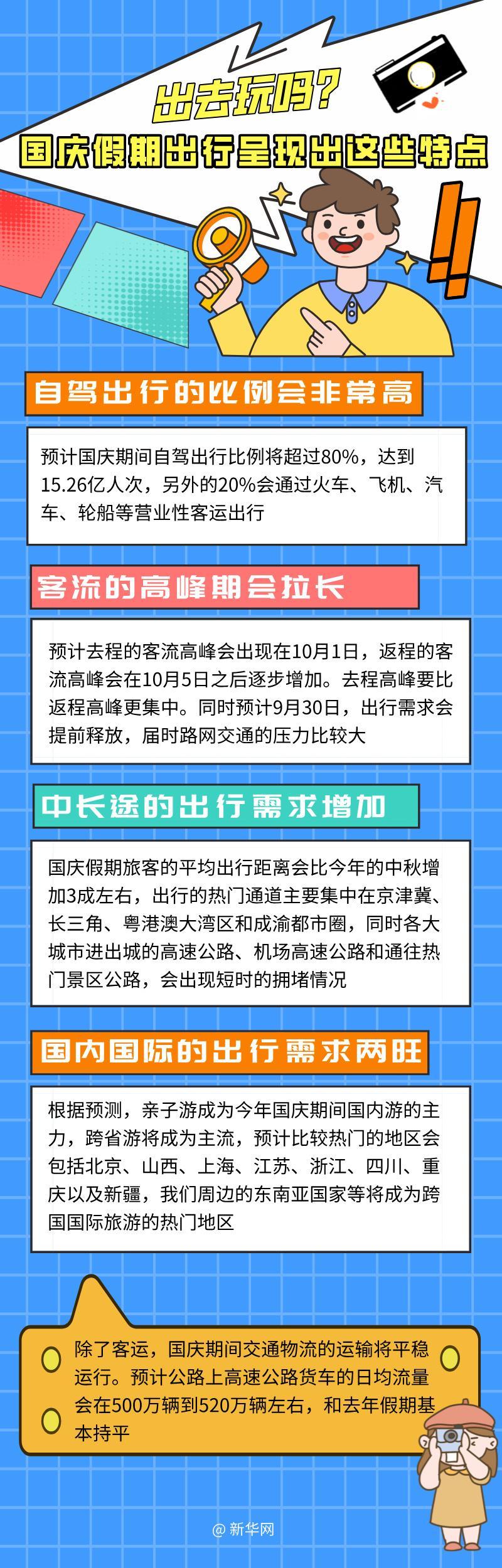 “十一”假期明天就將開(kāi)啟。交通運(yùn)輸部預(yù)測(cè),假期全社會(huì)跨區(qū)域人員流動(dòng)量將達(dá)到19.4億人次,平均每天2.77億人次。強(qiáng)烈的出行意愿?jìng)鬟f出流動(dòng)的中國(guó)活力。假期出行將會(huì)呈現(xiàn)出哪些顯著特點(diǎn)、主要的熱門(mén)目的地有哪些、交通部門(mén)如何做好服務(wù)和安全保障工作?