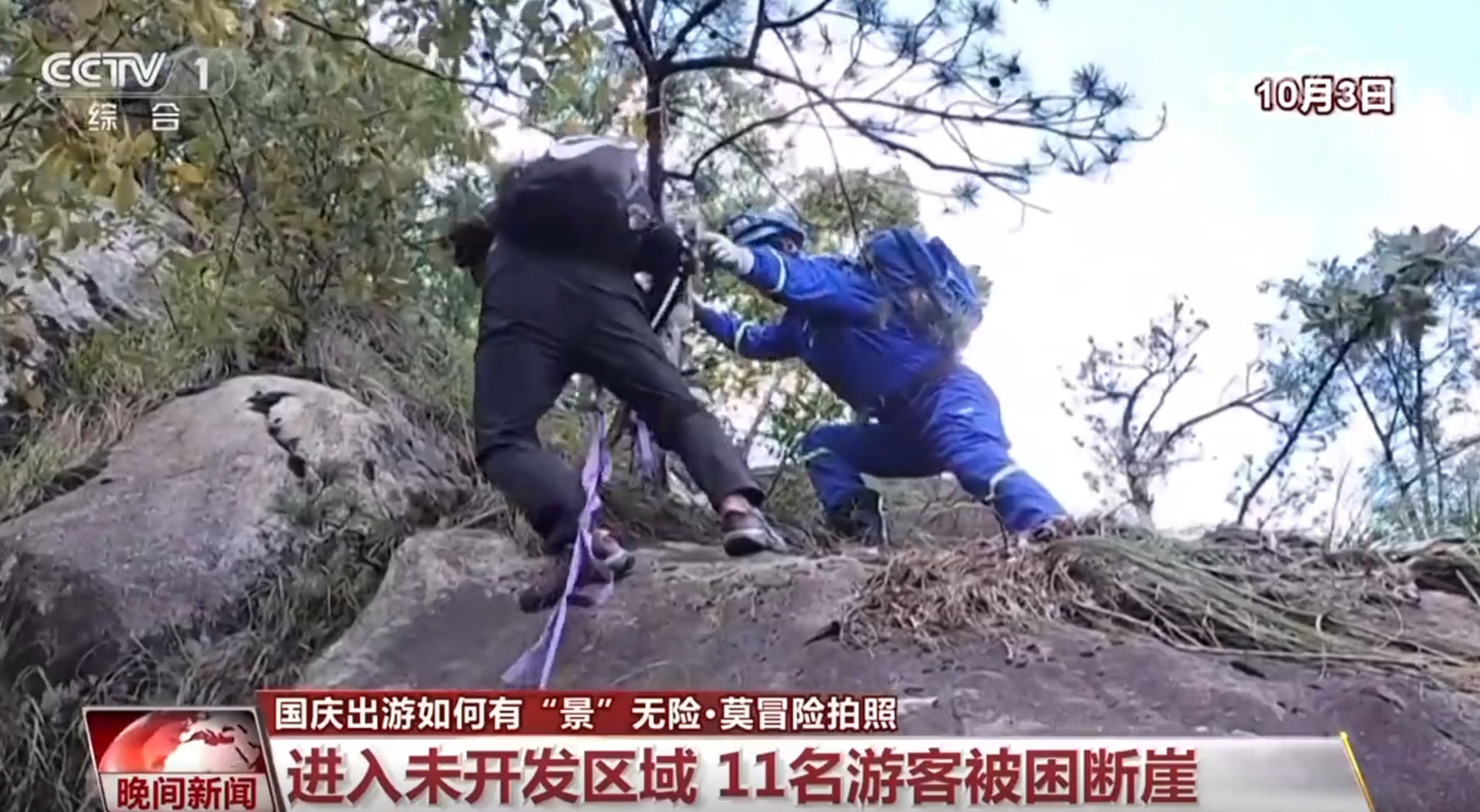 10月2日傍晚,有11名外地游客在安徽績溪縣一座未開發(fā)的山上攀爬時(shí),因?yàn)槊月穼?dǎo)致被困,當(dāng)?shù)毓埠兔耖g救援隊(duì)立即展開聯(lián)合救援。在3日凌晨一點(diǎn)多,救援人員找到了被困游客,由于游客被困的地方是未開發(fā)的區(qū)域,山勢十分陡峭,且有多處斷崖,救援人員只能反復(fù)利用繩索,將被困游客挨個(gè)兒送至安全地帶。